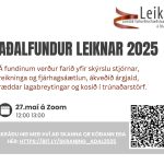 Aðalfundur Leiknar veður haldin á Zoom þann 27. maí 2025 kl. 12.00-13.00. Vinsamlegast skráið ykkur á https://bit.y/skraning_adal2025 eða skannið kóðann. Bestu kveðjur, stjórn Leiknar